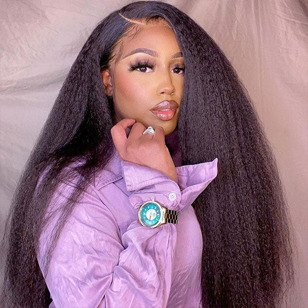 [5x5 HD Lace Wig] Affordable Kinky Straight Lace Closure Wigs Pre Plucked With Baby Hair Yaki Straight Human Hair Wigs