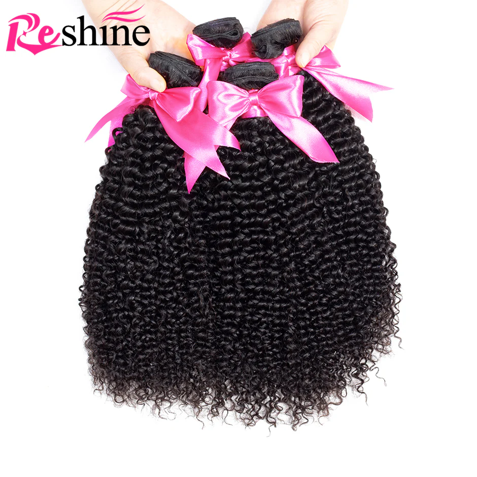 Reshine Hair 4 Bundles Kinky Curly Human Hair Extensions Natural Color Free Shipping Brazilian Curly Hair Weaving