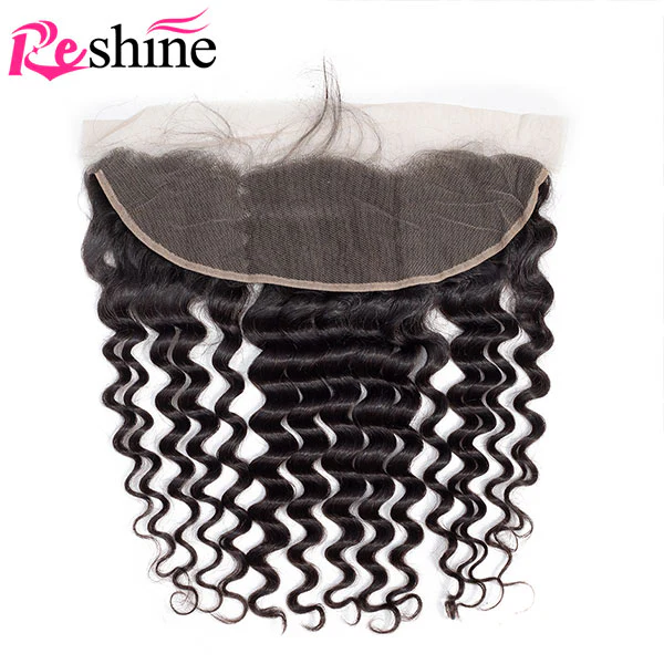 Reshine Hair Deep Wave Lace Frontal Closure Per Plucked With Baby Hair Brazilian/Pervian/Malaysian Human Hair