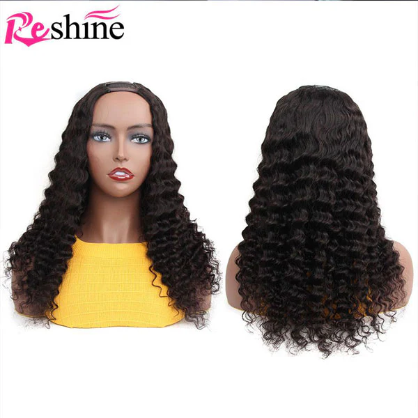 Reshine Hair U Part Wig Deep Wave Curly Hair Brazilian Peruvian Malaysian Human Hair Wigs