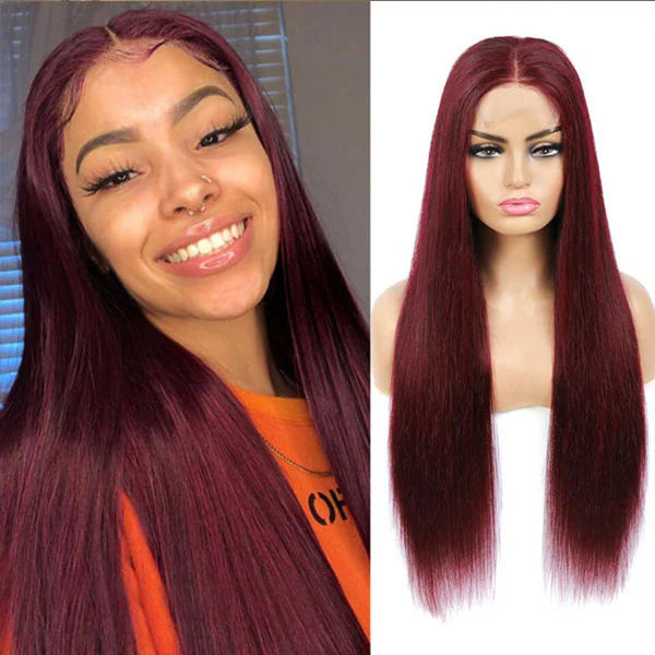 99J lace front human hair wigs for black women Burgundy color wine red color straight lace front human hair wigs pre plucked with baby hair
